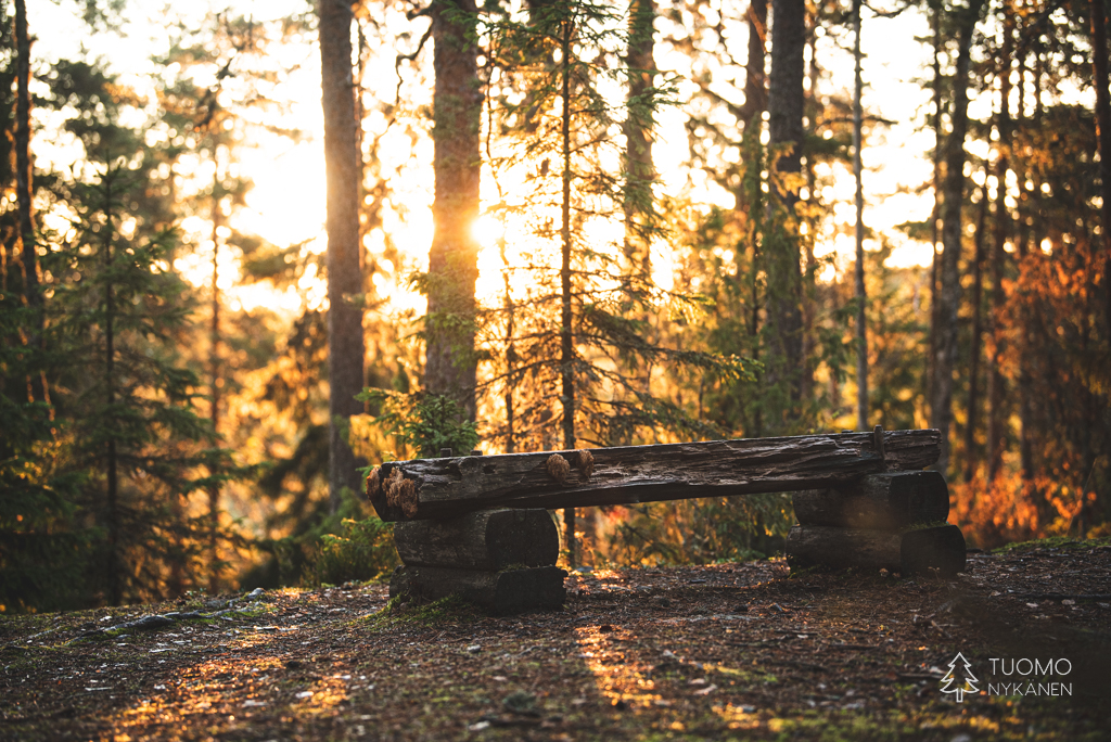 Tällä hetkellä Tiinan jalkakokeilujen yms. johdosta kun emme oikein pääse yhteisille pidemmille reissuille niin nämä vaihtoehdot ovat aivan täydellisiä jotta pääsee helposti luonnon helmaan katselemaan auringonlaskua kohti leijailevien pilvien matkailua. Jos oikein haluaa niin tästäkin pääsisi hyvin nopeasti Seitsemisen kansallispuiston poluille mutta tuntuisi hölmöltä lähteä näin rauhallisesta paikasta yhtään mihinkään. Valon eri vaiheiden seurailu tarjoaa riittävän vaihtuvia maisemia jo yhdellekin näyttämölle.
