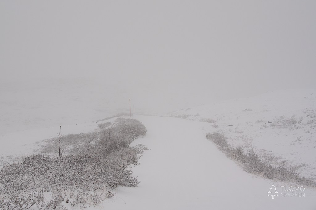 sitten mittavat pohjansinivalvatin violettina loistavat rinteet, josta laskeudutaan tiheän pusikon kautta jonkun takapihalle. En kuitenkaan ole osunut väärälle polulle vaan norjalaiseen tapaan reitti tosiaan kulkee suoraan jonkun takapihan sivustalta tielle.