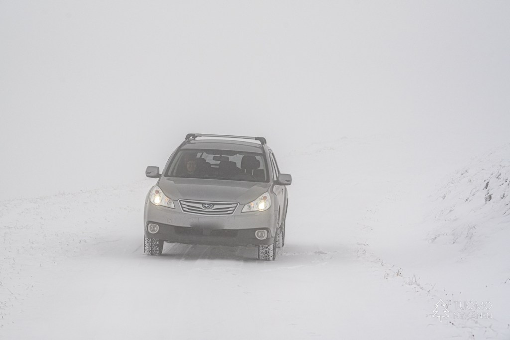 Arnøyalle suuntaamme noin viikkoa Vannøyan käyntiä myöhemmin erinäisten muiden reissujen jälkeen. Tämä saari sijaitsee Skjervøyn lähettyvillä, Lyngenin alpeilta koilliseen. Lautta kulkee Storsteinista Laukslettaan. Enpä ole koskaan aiemmin kirinyt, tai edes yrittänyt kiriä, Norjan teillä aikaa kiinni, mutta olemme juuri huomanneet että lautta saarelle lähtee pari minuuttia ennen kuin meidän pitäisi sinne saapua, seuraavaa joutuisi odottamaan hieman pidempään. Tie pitää kuitenkin huolen ettei minkäänlaisesta ralliajosta tarvitse edes haaveilla, pomppuihin ja vajoamiin voisi melkein mahtua poro piiloon makaamaan. Jos emme ehtisi niin voimme hyvin tutkiskella satamaa ja keitellä kahveja tms. Mutta ehdimme, tosin aivan jonon hännille emmekä hahmota ollenkaan mahdummeko. Näyttää kuitenkin ettei lauttahenkilökunta edes yritä tiivistellä sen kummemmin joten tilaa varmaan olisi vielä vaikka kuinka.