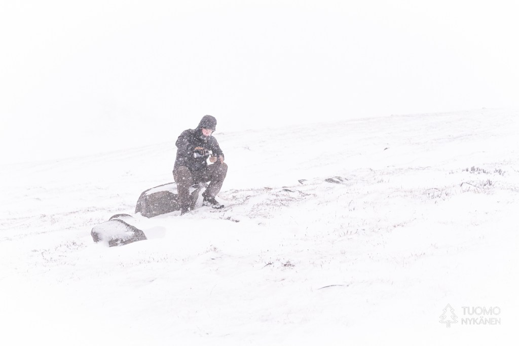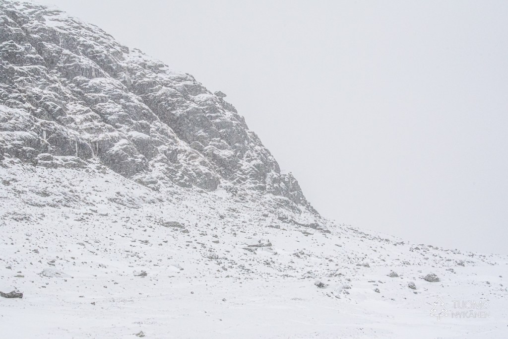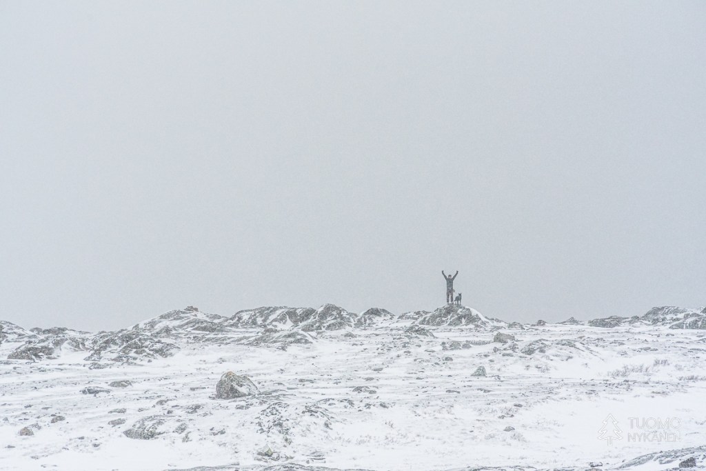Kuovit joko lentävät noustessamme vierellämme huutaen tai asettuvat jonkin matkan päähän sopivalle kivelle – huutamaan. Puolen tunnin jälkeen voisin vaikka vannoa että tuo ääni vaikuttaa jo tasapainoonikin, tunnin päästä tekisi mieli käydä maahan sikiöasentoon kädet korvien päällä.