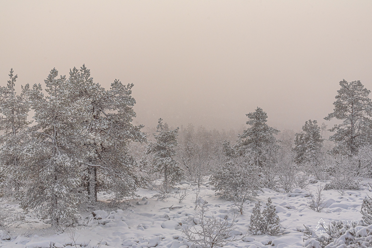 Paikoin kuusta kasvava maisema tuo vaikutelman kuin olisi Coloradossa tai Alaskassa.
