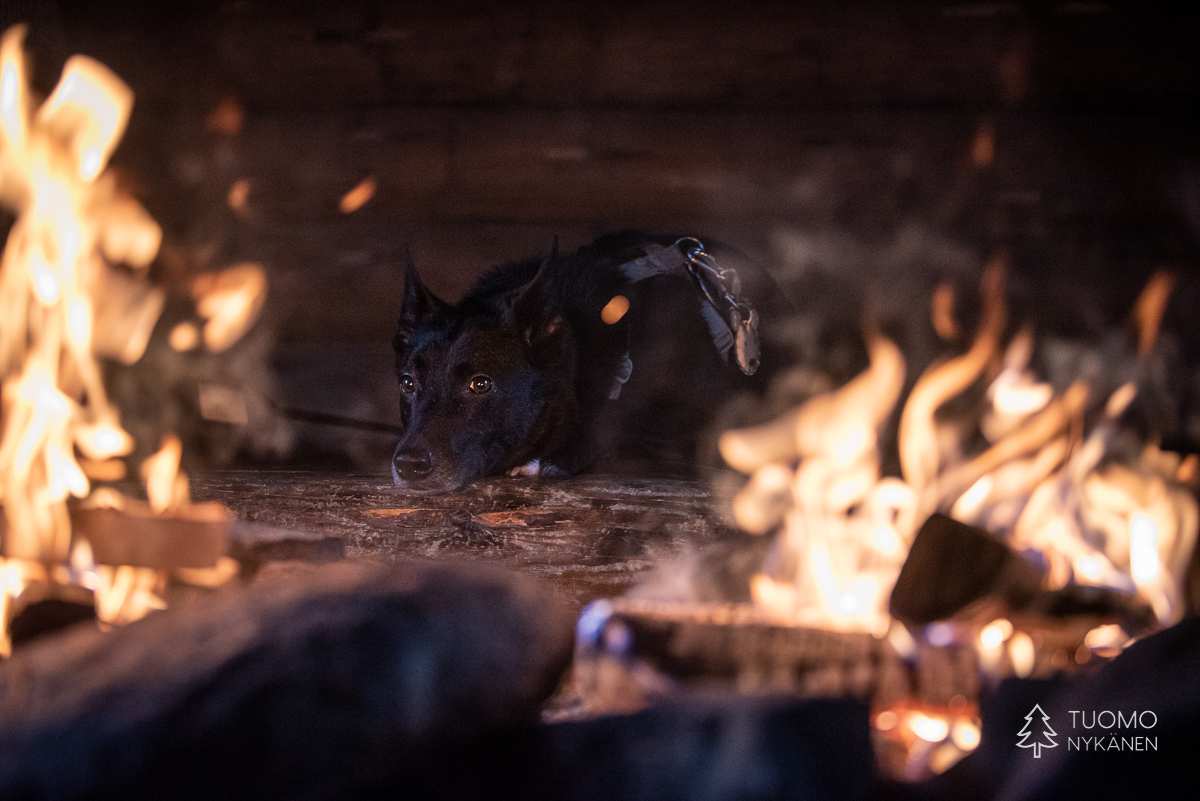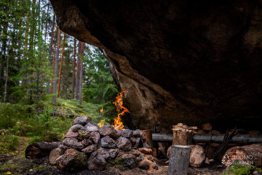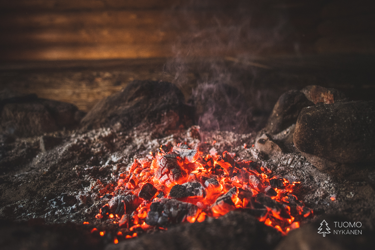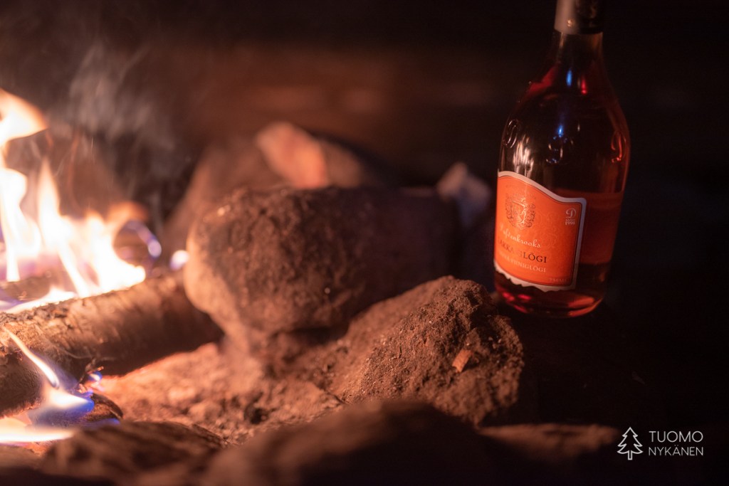 Raivaan tulipaikan tyhjäksi lumesta, pinoan puut huolellisesti tuulta vastaan ja nostan pannun lämpenemään. Tuoksu on täydellisen tunnelmallinen – lämmin nuotion savu vasten raikasta talvi-ilmaa.