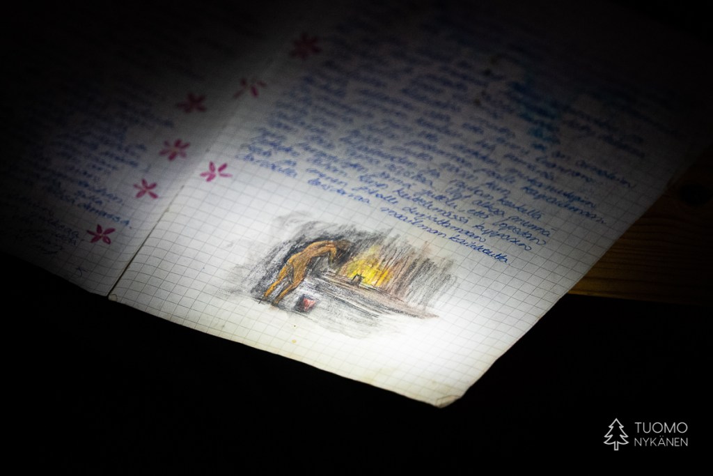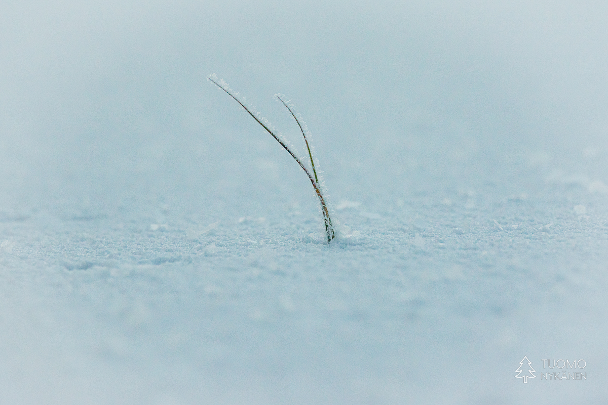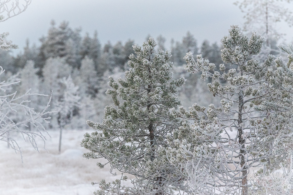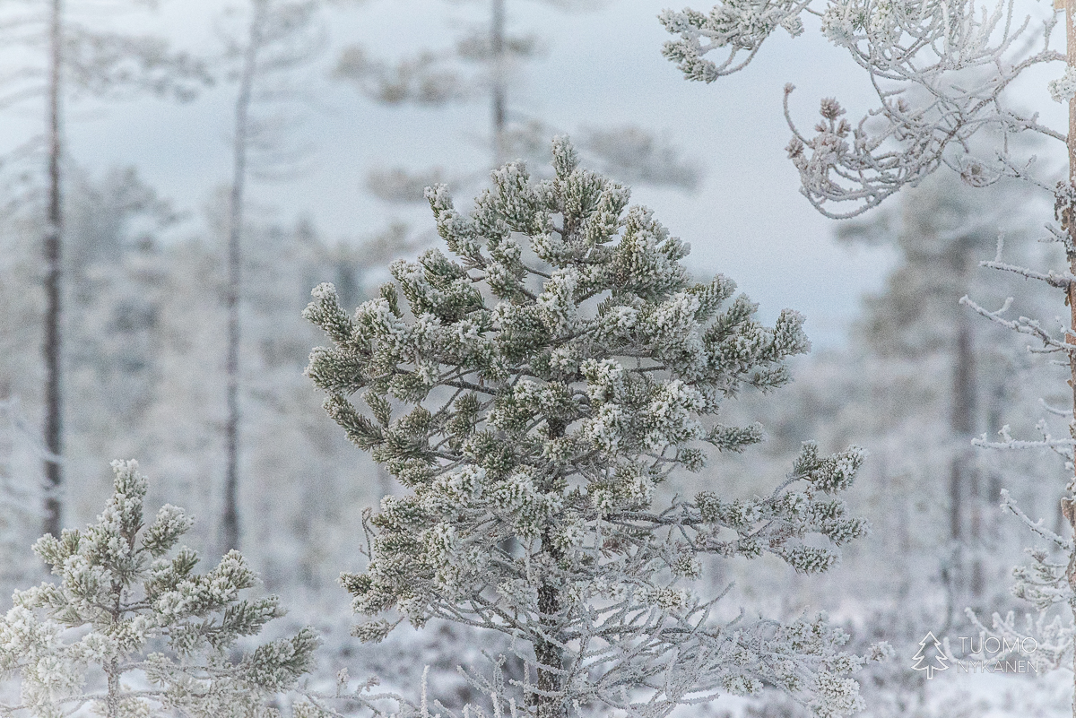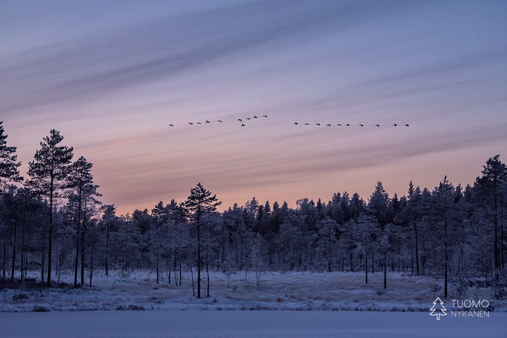 ”Tuulen täytyy käydä pohjoisesta” mietin, sillä vain pohjoinen tuuli voi olla ihmistä kohtaan näin raaka. Ahvenlammin pintaa rientävä tuuli nostaa jään pinnasta kiteitä ja heittää ne suoraan päin naamaani, ensin edestä sitten sivulta. Kun jää ei tepsi yrittää viima vielä nostattaa tulesta kipinöitä heittääkseen nekin vihoissaan. Mutta silläkään ei ole muuta vaikutusta kuin että kiristän hieman kaulusta ja otan uuden siemauksen kuksasta odottaessani eväsleipien lämpenemistä. Metsän ja lampien halki kulkiessa on kehon lämmitys käynnistynyt ja lentelevä lumi sulaa lämpimille kasvoille. Talvi täyttää tehtäväänsä ja nautin siitä täysillä.