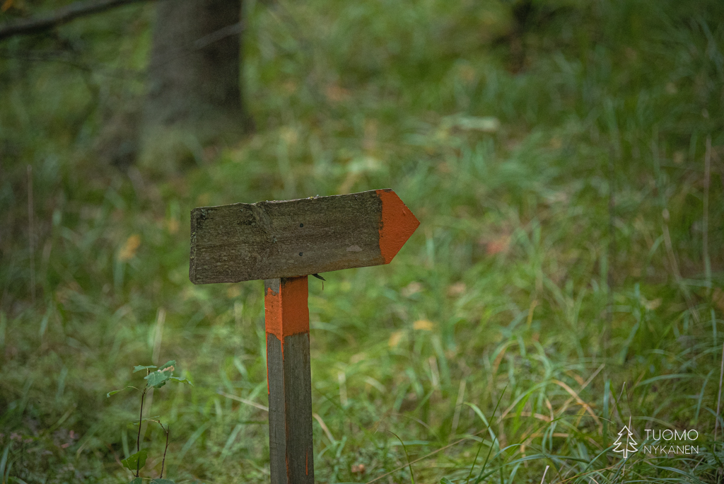 Polku ja sen kohteet on helposti ja selkeästi merkitty oranssein merkein ja kyltein.
