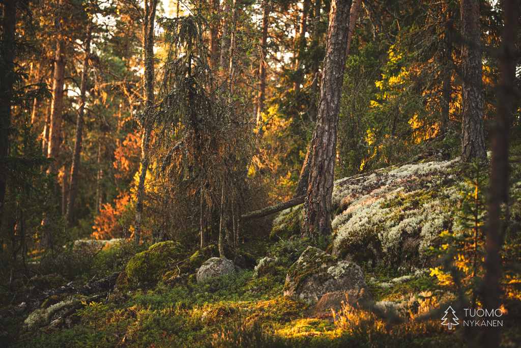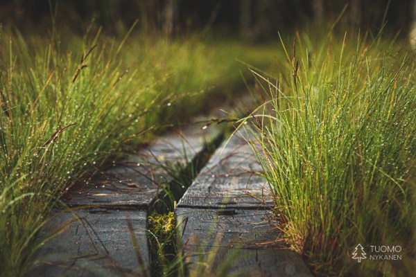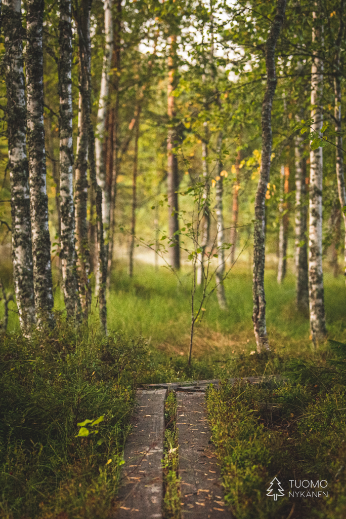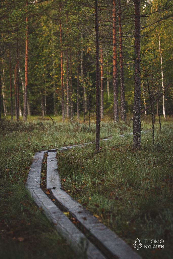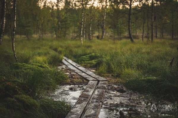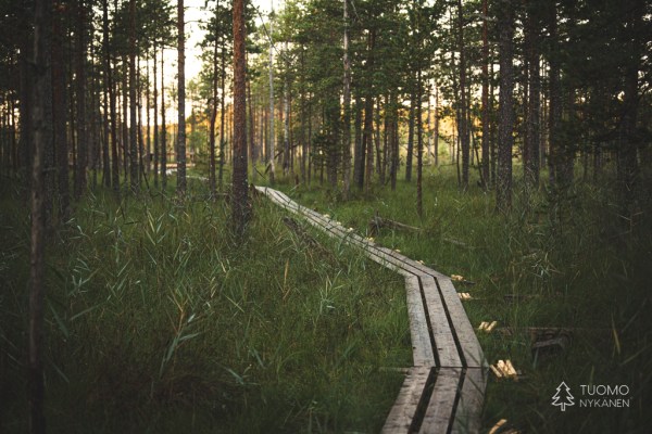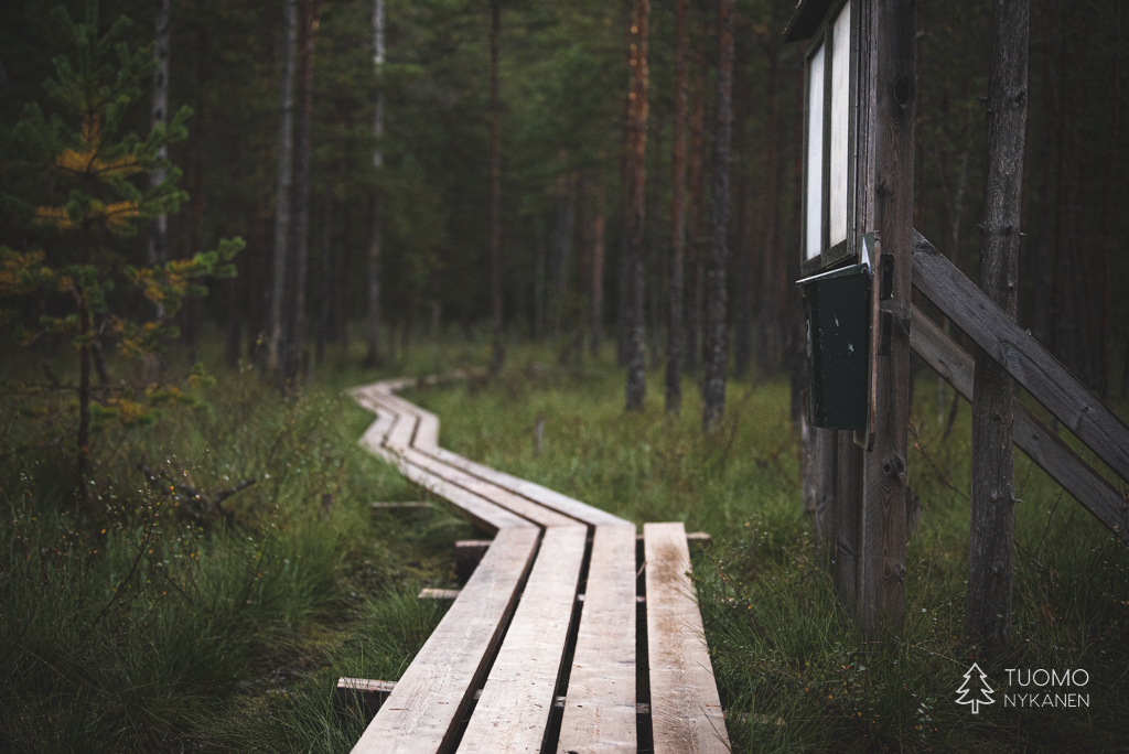 Kallioilta laskeudutaan alas Mieliäissuolle vieville pitkoksille ja niiden päässä odottavalle tornille.