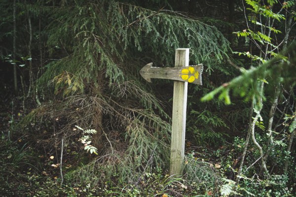 Reitille paluu tapahtuu samoja pitkoksia pitkin ja pienen matkaa metsäautotietä kunnes nousu vie taas kallioiden päälle. Reitti on merkattu puisin nuolin ja/tai keltaisella tassun kuvalla.