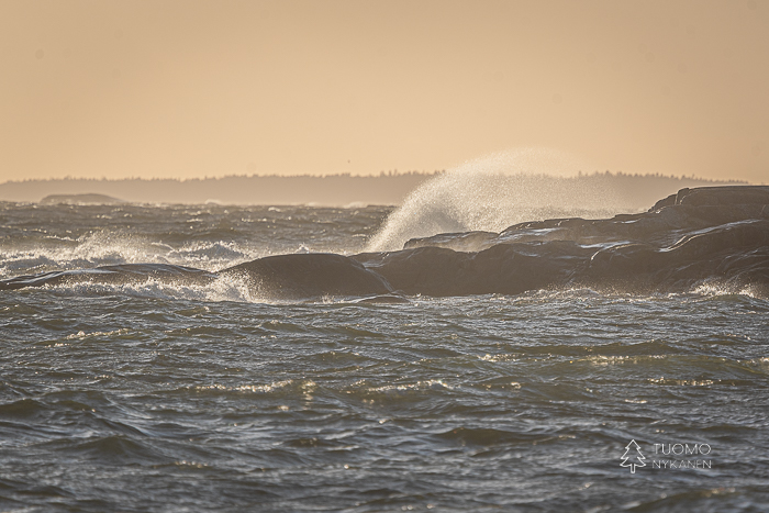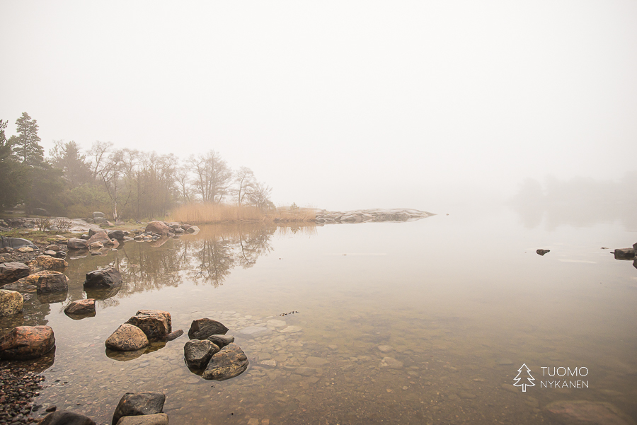 Harmaata päivää moititaan aivan suotta, tututkin yksityiskohdat näyttäytyvät aivan erilailla kun voimakas sumu kätkee muut värit helmojensa alle. Maiseman kaarteet pääsevät oikeuksiinsa ja tekevät yksinkertaisesta taidetta jossa silmä lepää. Monessa paikassa tarjoutuu nopeasti yllätyksellisiä hetkiä kun näkyvyyden puute ajaa lintuja ja eläimiä lähelle, tällöin hiljainen paikallaan olo kannattaa.