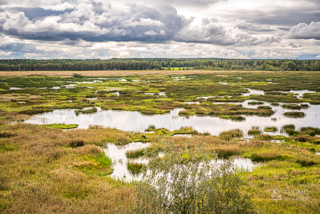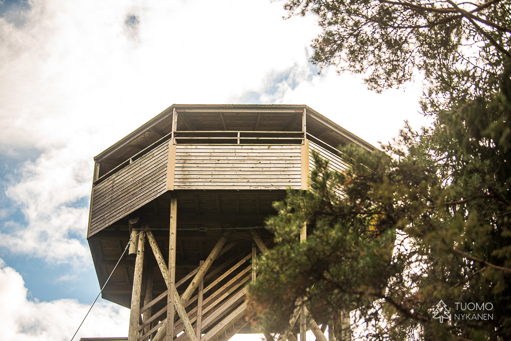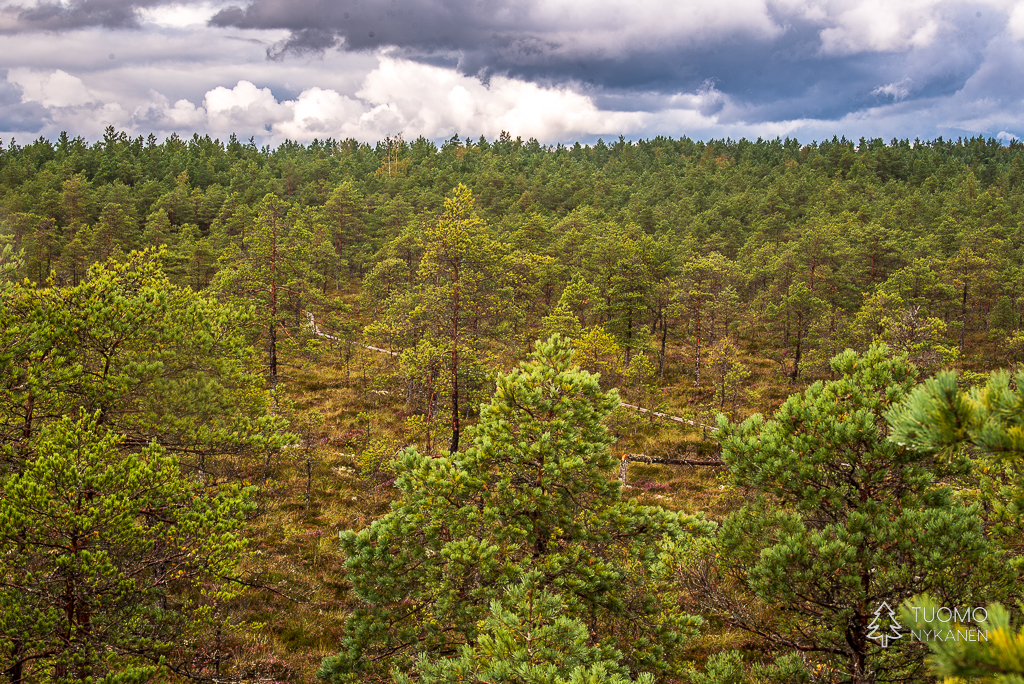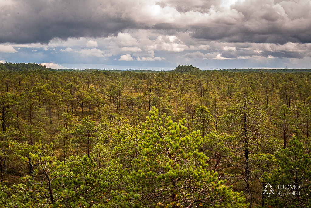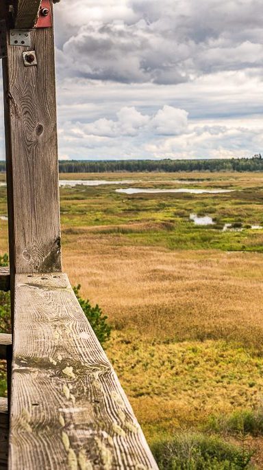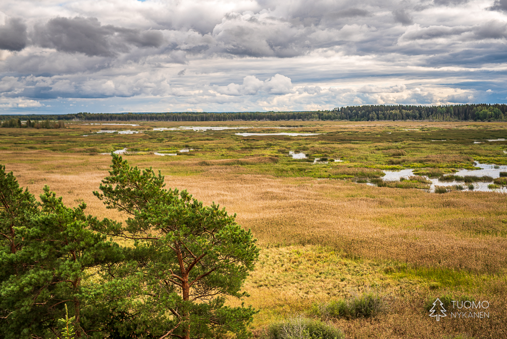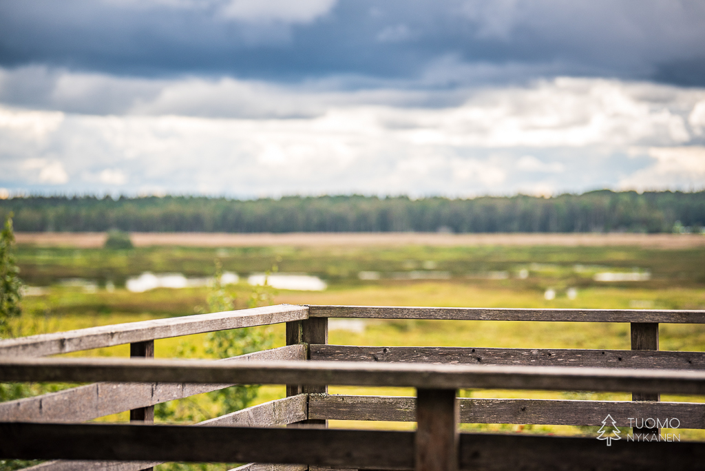 Ympyräreitin varrella voi nousta lintutorniin, juuri suolla kasvavien mäntyjen latvojen korkeudelle, tarkkailemaan suon elämää.