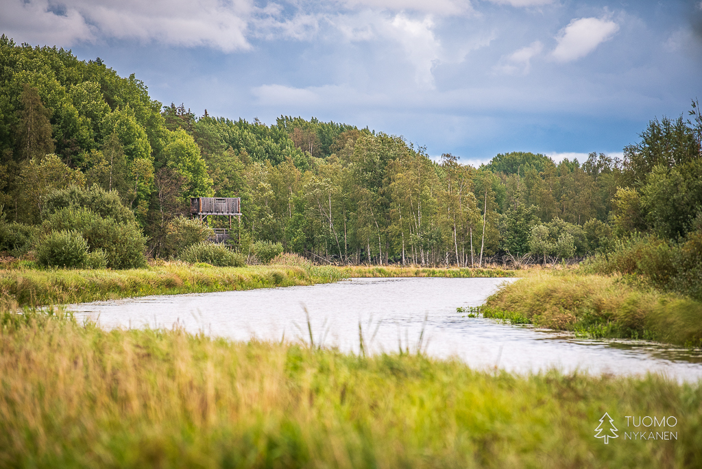 Ahvenuksen lintutorni Puurijärven pohjoispuolella vahtii joen ja jokisuiston elämää.