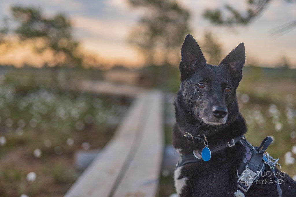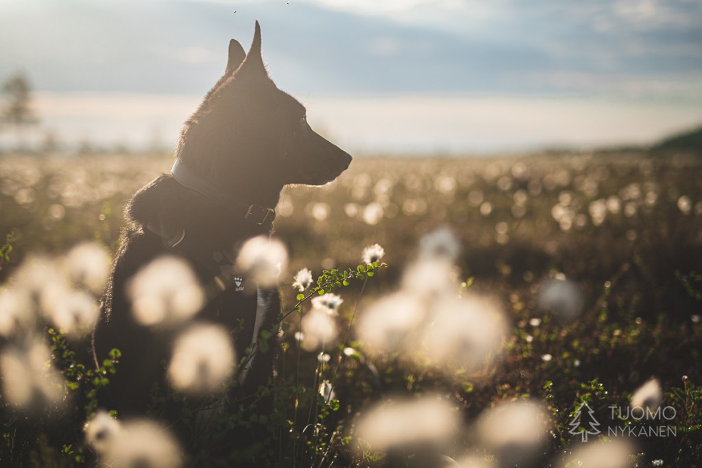 Tiina varmaan on jo lämpöisessä kahvittelemassa ja mielessä käy että on tämäkin tapa kuluttaa aikaa – mitä parhain tapa siis. Myräkkä yltyy ja näkyvyys alkaa pian kaikkoamaan, koiran musta turkki peittyy valkeiden hiutaleiden alle kun piilotan itseni syvälle hupun uumeniin. Tunnen oloni kevyeksi vaikka rajummat olosuhteet alkavatkin vaatimaan työtä sekä tarkkaavaisuutta. Kun retkeilemme koko poppoo yhdessä syrjäseuduilla tai reittien ulkopuolella kuluu omaa energiaani jonkinlaisen pelastautumissuunnitelman ylläpitämiseen suunnattoman paljon vaikken sitä aktiivisesti varsinaisesti miettisikään. Yksin kulkiessa vaihtoehtoja on hieman enemmän ja vaihtoehtoisten reittien tarkkailu on helpompaa kun sitä tarvitsee miettiä vain omalta osaltani.
