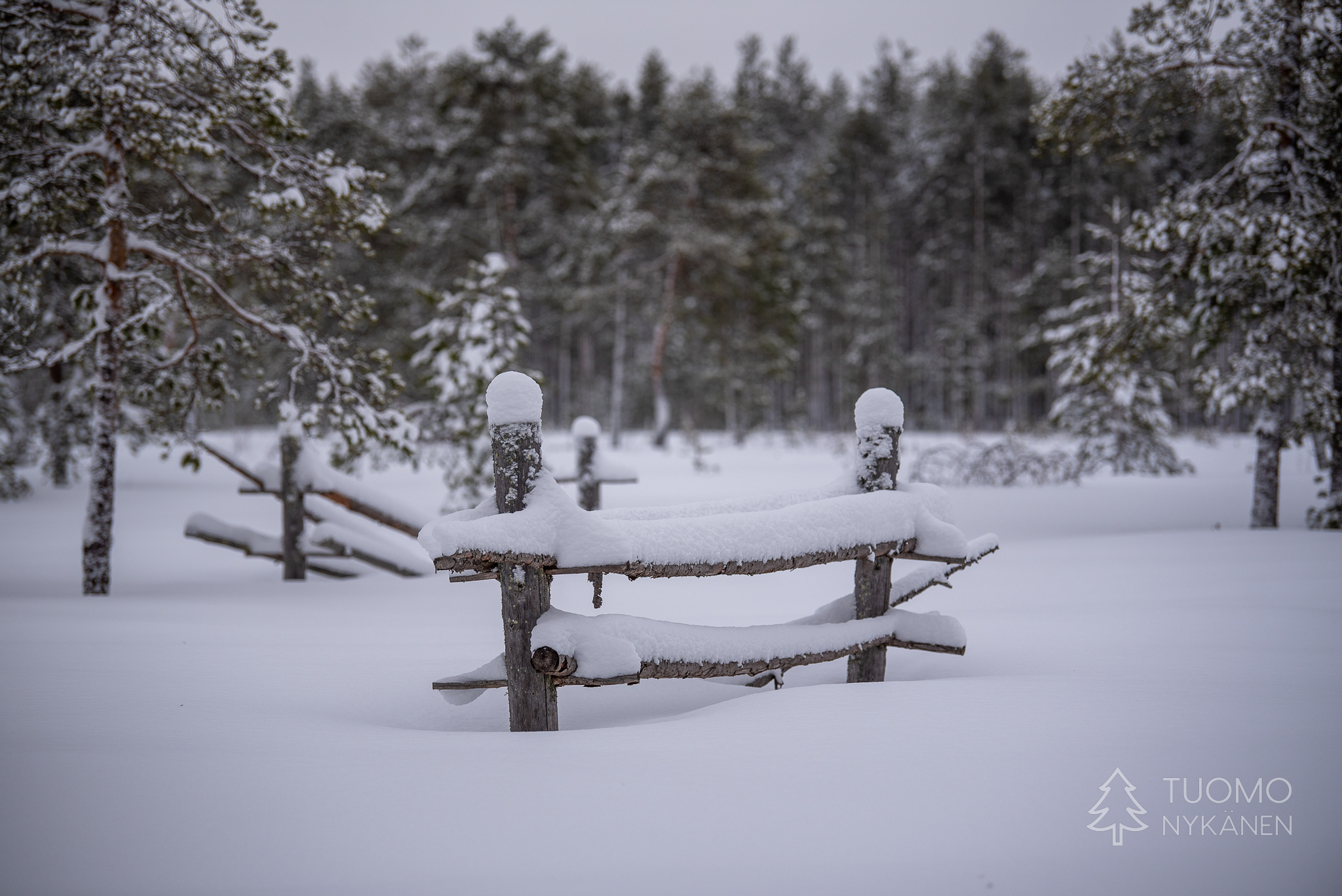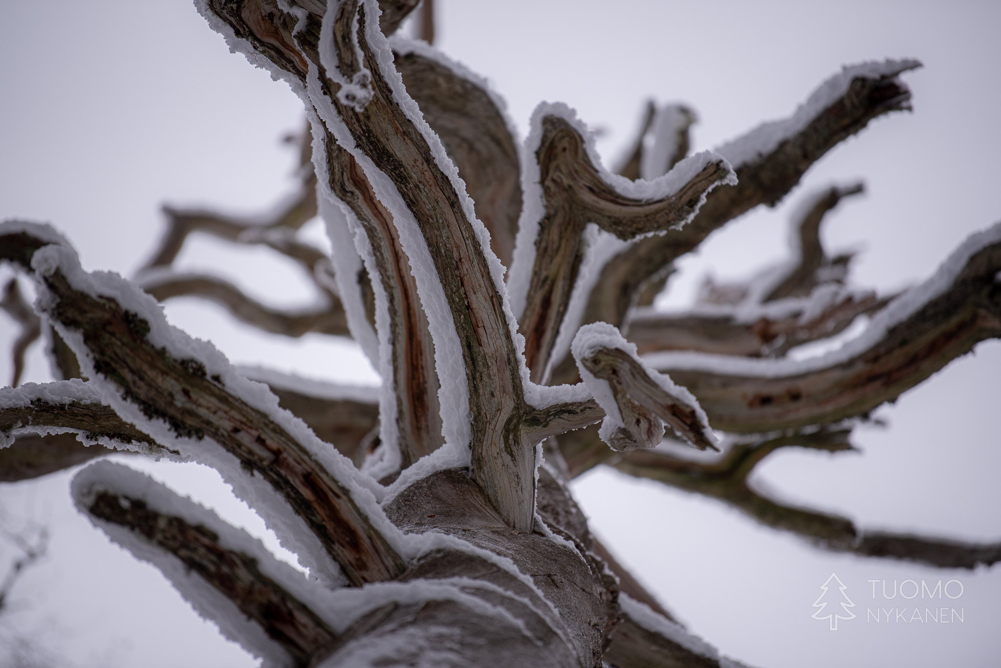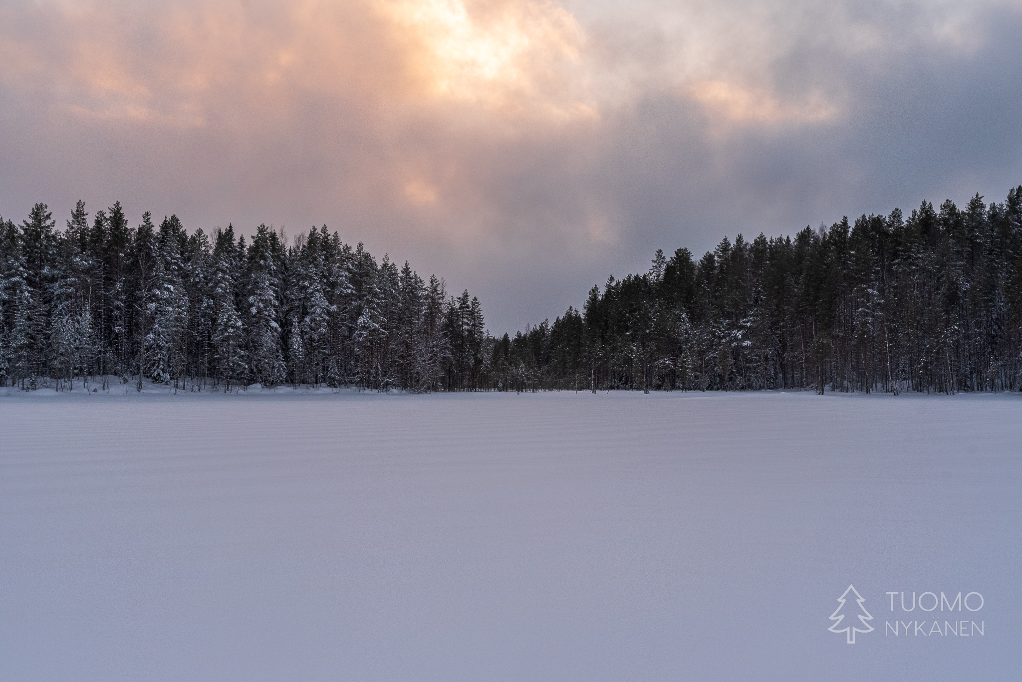 Tuuli kulkee aalloissa, välillä suuria lumisia aaltoja pyyhkii määränpääni edestä peittäen maiseman täysin valkeaksi. Viima on nostanut ilmaan kaikki hiutaleet mitkä se on saanut innostettua mukaan, niin ylhäältä pilvistä kuin alhaalta kinoksista. Yhdessä ne ovat voimakkaita ja vihaisia, pienet neulaset hakkaavat terävästi poskia ja ropisevat vaatteilla. Silti koen että tämä oikukas luonnonvoima on ystäväni, se vain tekee työtään tuoden hidasta muutosta kevättä kohti. Yhdessä piirrämme väliaikaisia kuvioitamme lumeen, se etelästä ponnistaen ja minä taas etelää kohti kulkien.