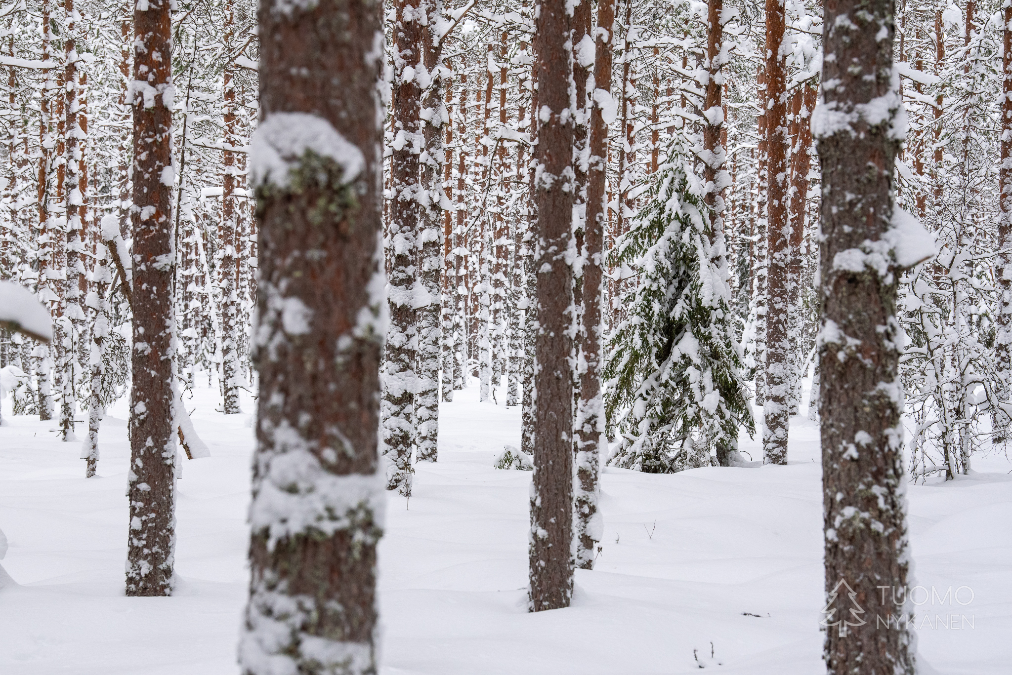 Multiharjun parkkipaikka on tyhjä ja polulla on vain yhdet jäljet. Metsään suuntaavan polun ympärillä kuuluu verkkaista rummutusta, laiska koputuksen tahti paljastaa pohjantikan kiipeilevän ylhäällä latvojen tasalla.