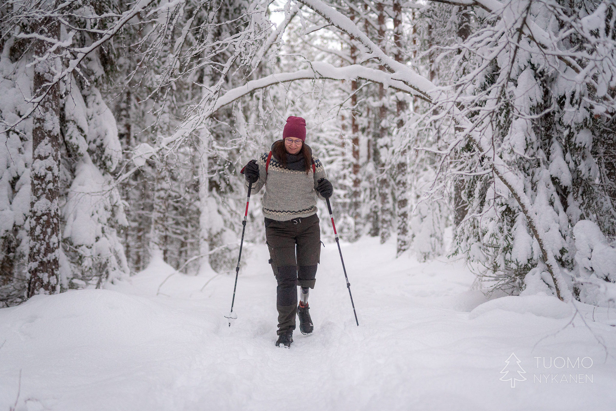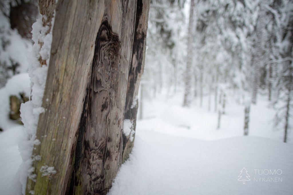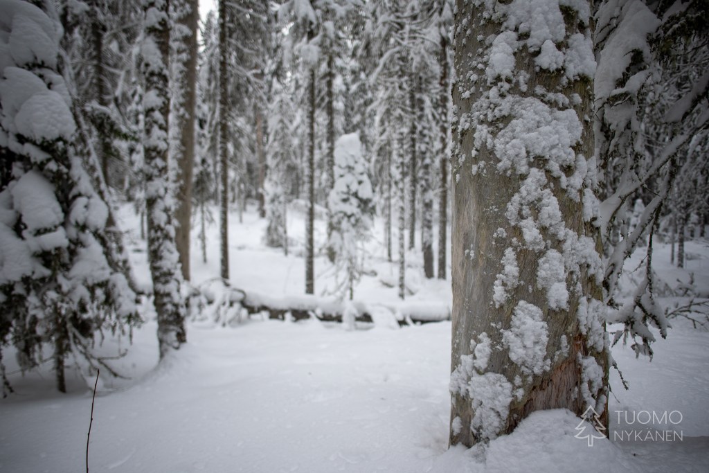 Lumi muljuu jalkojen alla ja ylöspäin suuntaavaa polkua on väsyttävää kävellä. Aarnipolun ympyrälenkin keskellä on koskematonta vanhaa metsää jossa kulkeminen on sallittua vain tutkijoille, se on arvokasta ja ainutlaatuista aluetta jonka komeus aukenee tällaiselle tavallisellekin tallaajalle.